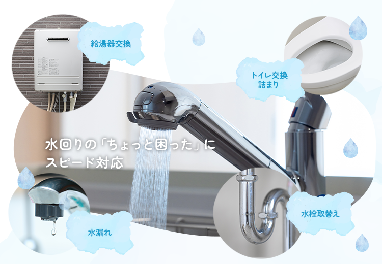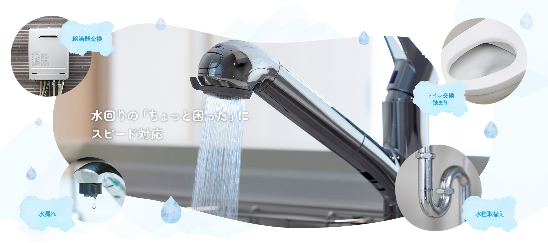 「蛇口の水漏れを見てほしい」「給湯器の調子が悪い」など、小さなお困りごとからでもお気軽にご相談ください。